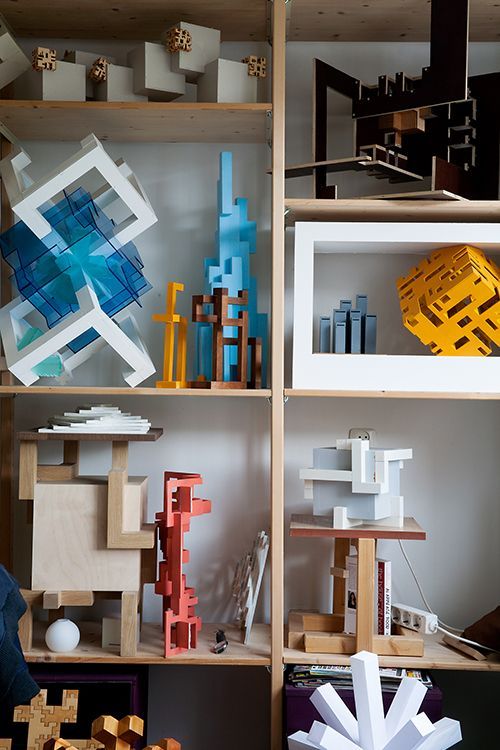 Ik creëer vormen om het maken, zonder vooropgesteld doel. Vormen die zo ontstaan vinden hun weg naar design en kunst. De vormen staan op zich en ontstaan uit een herschikking van elementen volgens een bepaalde wetmatigheid. Mijn basisvorm is de kubus, balk of plaat. Vanuit dit oppervlak of vorm creëer ik mijn eigen vormen of composities. Verhouding doet alles.
